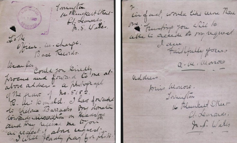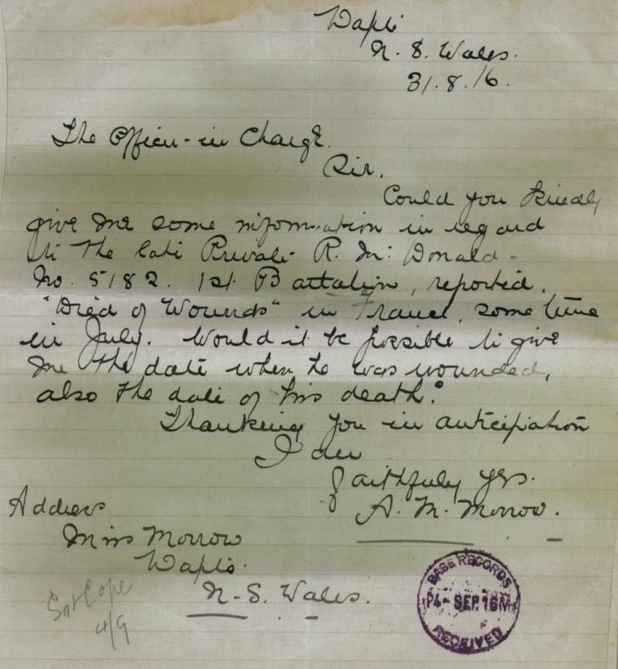Letter from Miss Morrow to Australian Military