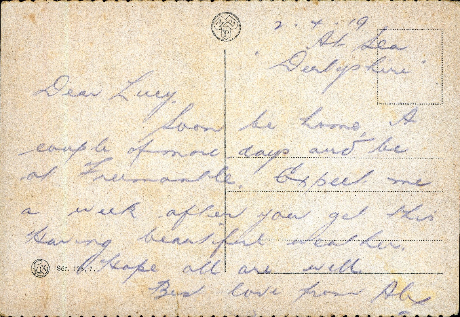 Caption: Postcard from Alex to Lucy (back)