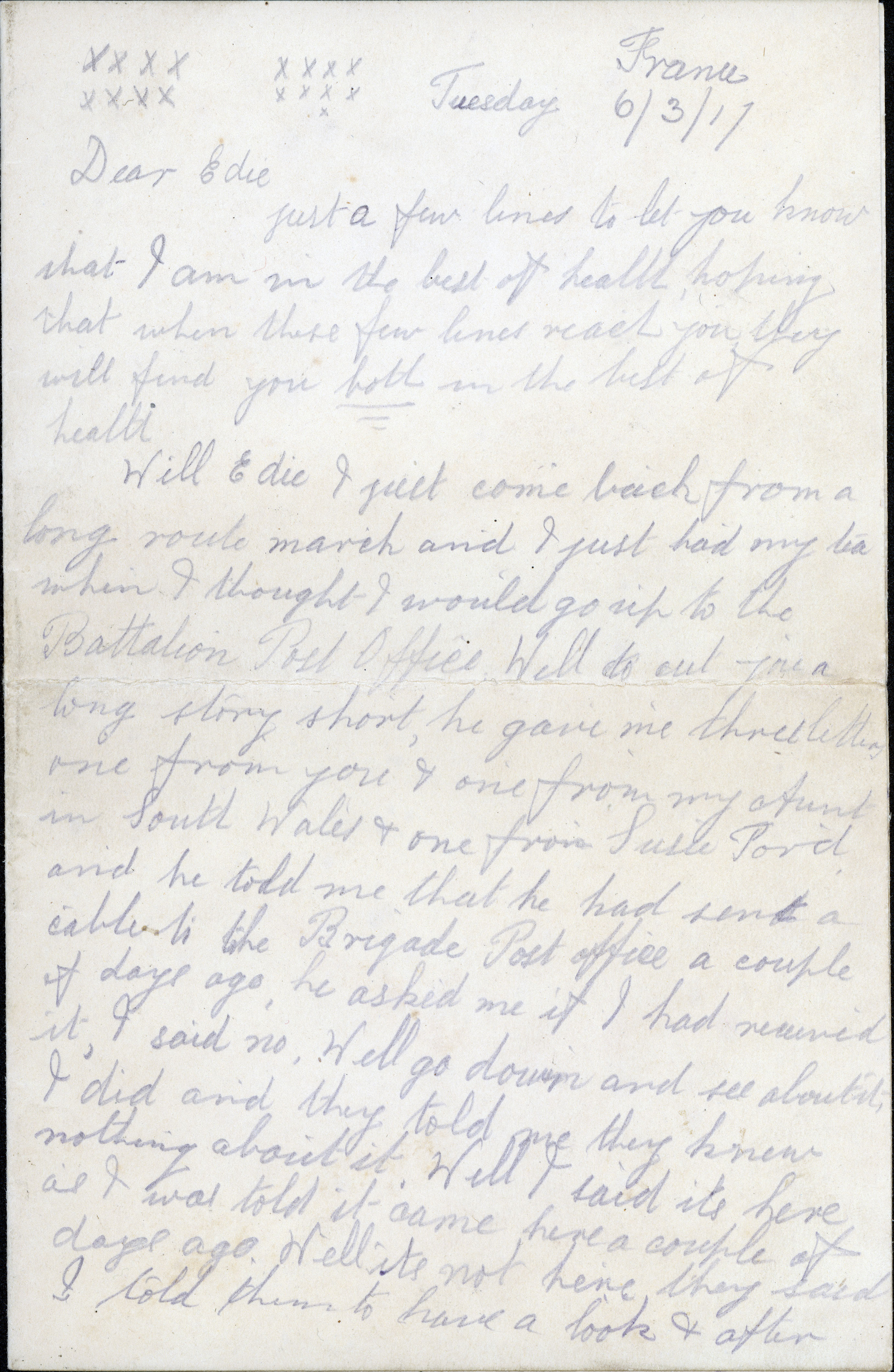 Letter from David John Morgans to his wife, Edie 6 March 1917