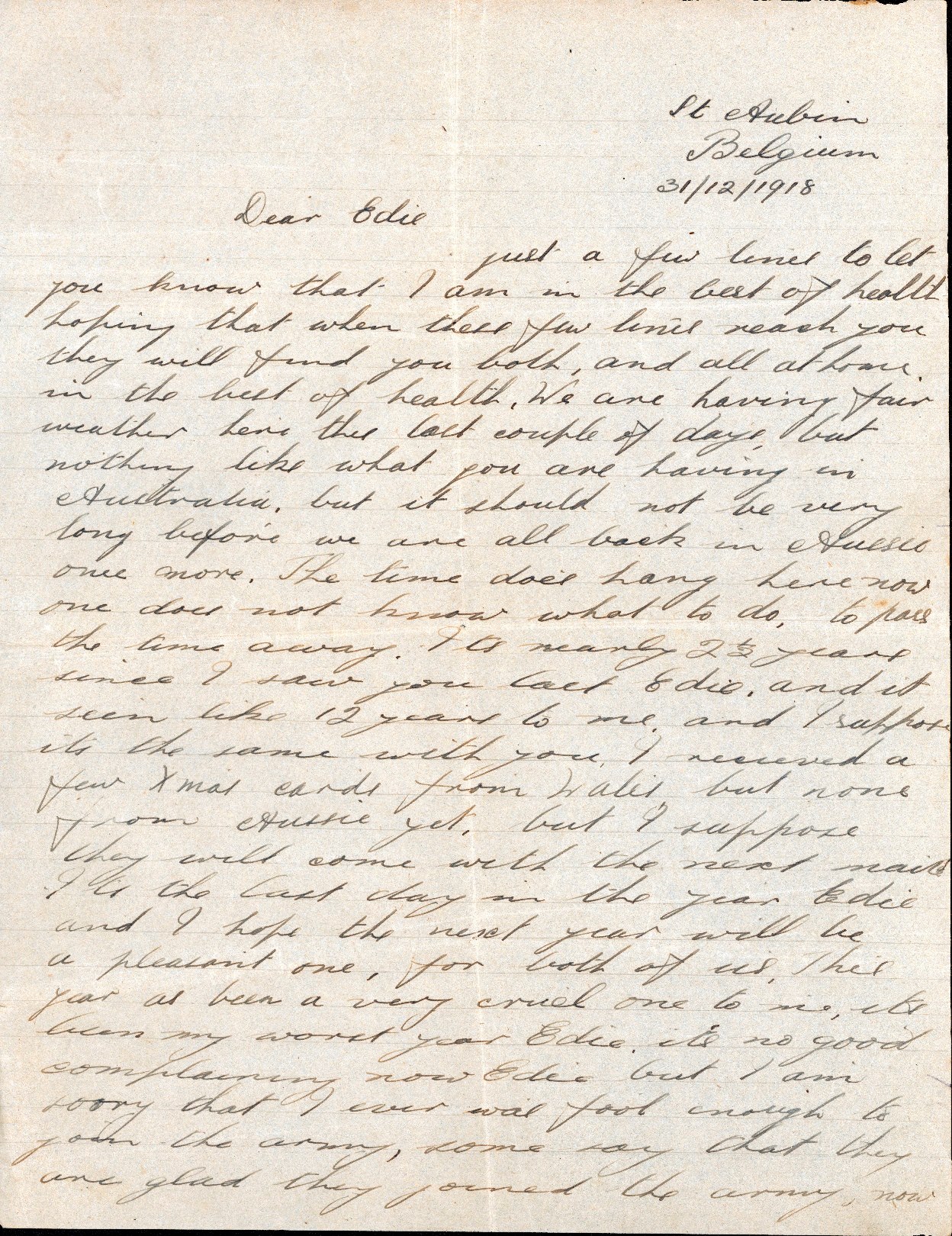 Letter from David John Morgans to his wife, Edie 31 December 1918