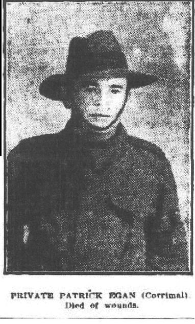 Patrick Egan (Service No 1546) was born in Sydney, NSW about 1884. At the time of enlistment he was described as a single 30 year old mine deputy at Corrimal. He embarked on HMAT A49 Seang Choon on 11th February 1915 with 3rd Reinforcements, 3rd Battalion.